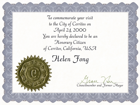 City of Cerritos U.S.A (Honorary Citizen) |